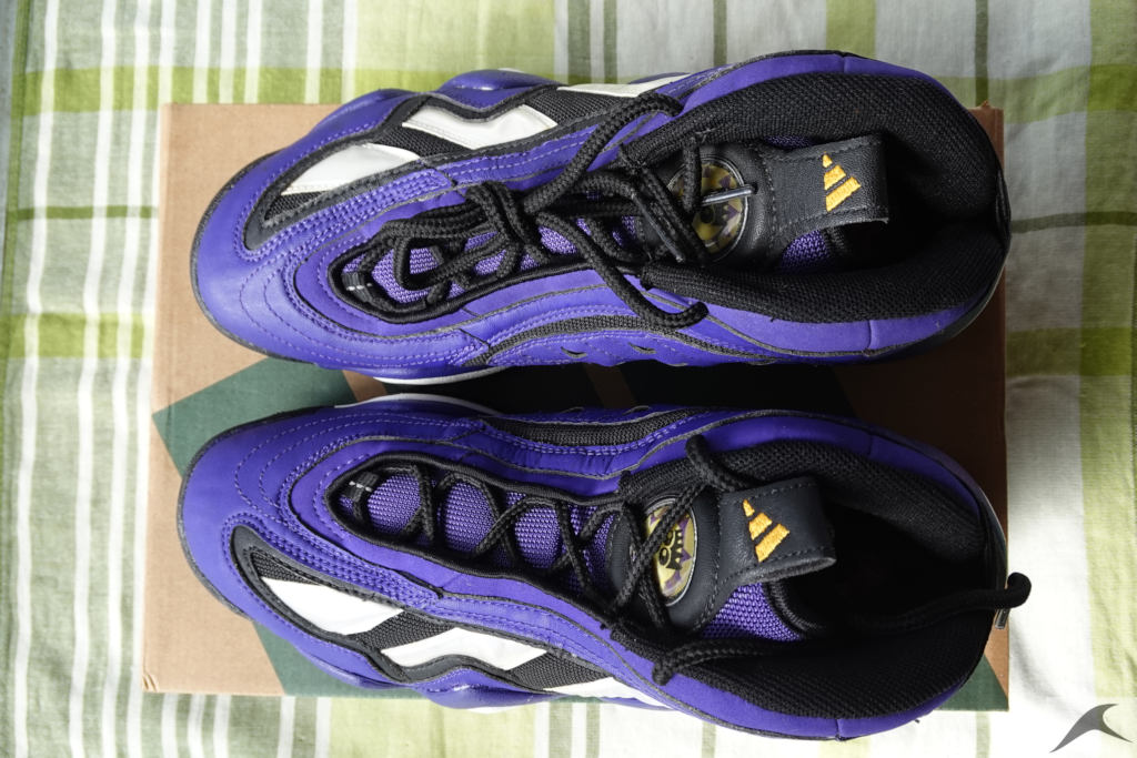 そんなルーキーイヤーに履いたアディダスのレイカーズパープルモデルの紹介です。