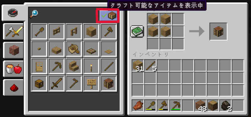 だんだんクラフトできるものが増えてくると探すのが大変になってきます。