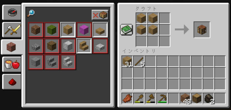 作業台を作ることでこの作業台を使って作れるものが一気に増える