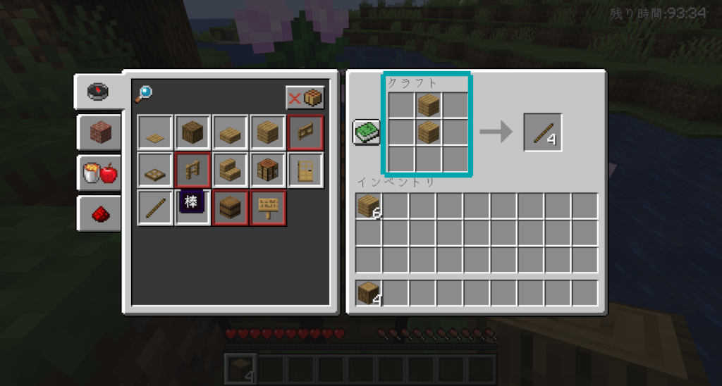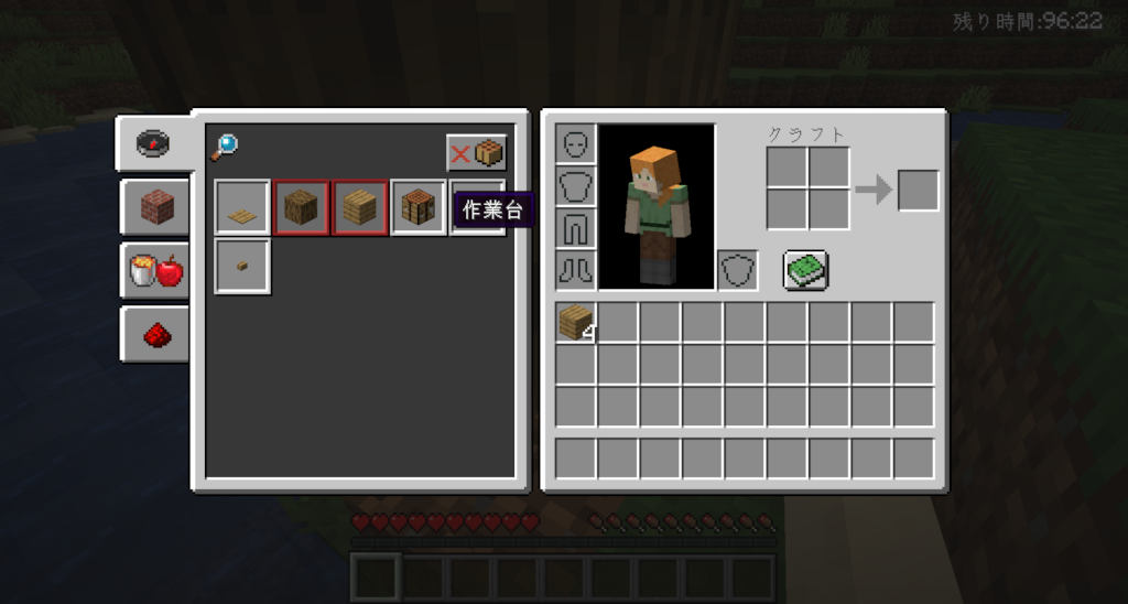そうするとレシピが増え”板材”がクラフトできるようになりました!