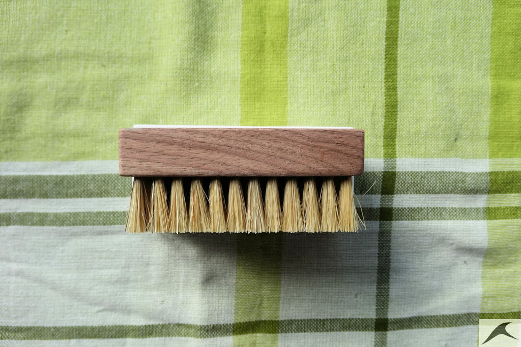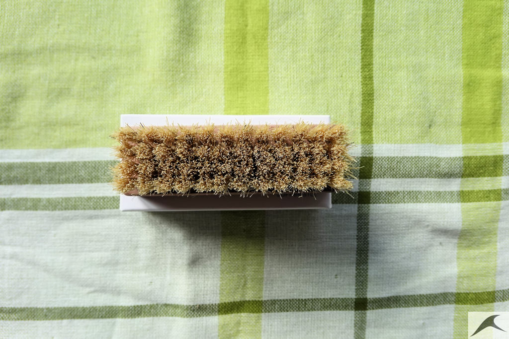 柔らかい豚毛でブラッシングする事で、素材を痛めずやさしく洗浄できます。
